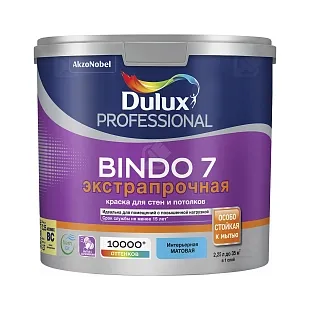 Краска для стен и потолков латексная экстрапрочная Dulux Professional Bindo 7 матовая база BC 2,25 л.