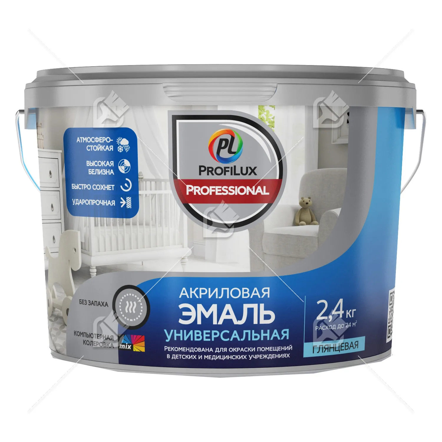 Эмаль универсальная акриловая Profilux Professional глянцевая база 1 белая 0,9 кг.