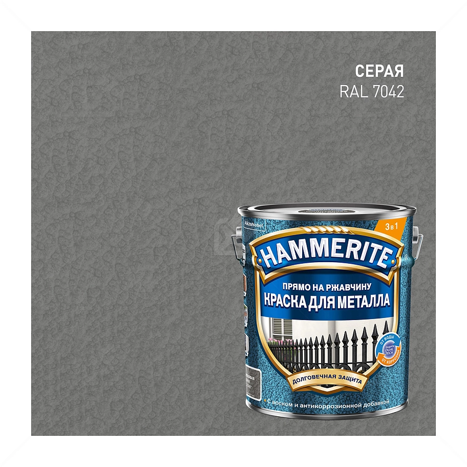 Краска для металлических поверхностей алкидная Hammerite молотковая RAL 7042 серая 2 л