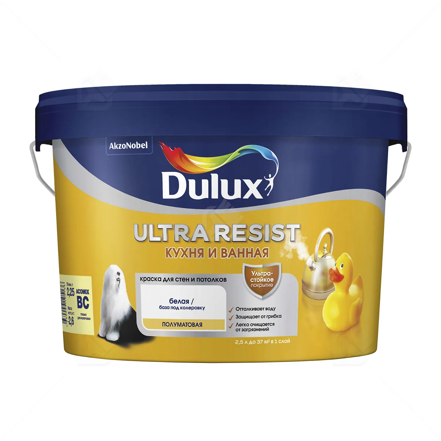 Краска для кухни и ванной латексная Dulux Ultra Resist полуматовая база BC 2,25 л.