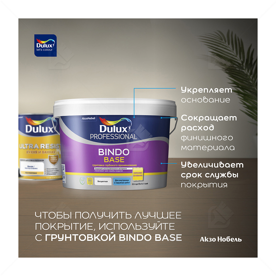 Перед применением тщательно перемешать. Чтобы уменьшить расход краски, загрунтуйте подготовленную поверхность грунтовкой Dulux Bindo Base. Рекомендуется наносить в два слоя при температуре от +5 °C до +30 °C, относительной влажности воздуха от 40 до 80 %. При окраске деревянных поверхностей рекомендуется нанести специальное грунтовочное покрытие.