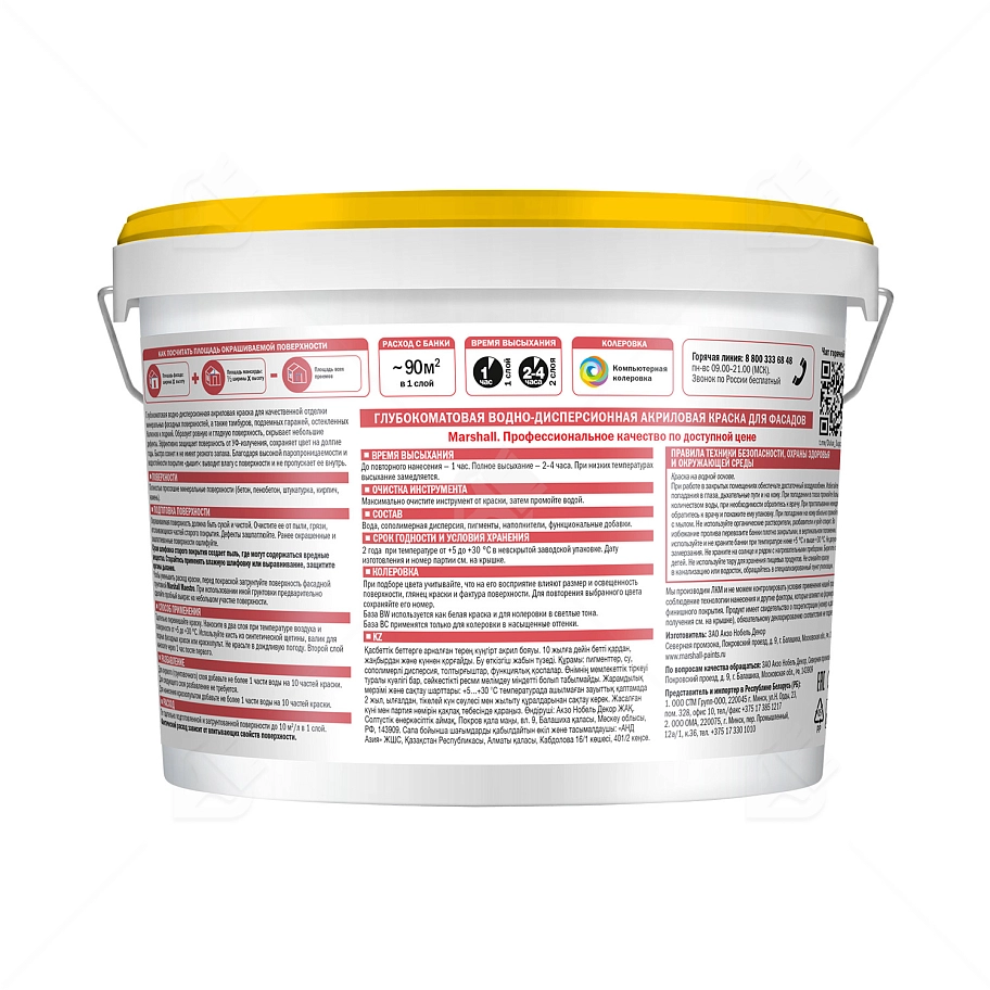 Краска фасадная акриловая Marshall Maestro глубокоматовая база BC 9 л.