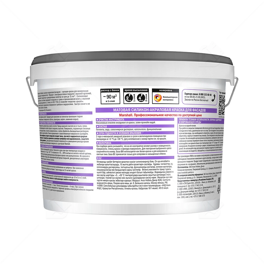 ПодробнееКраска фасадная силикон-акриловая Marshall Akrikor матовая база BW 9 л.