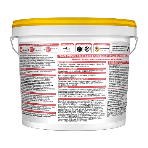 ПодробнееКраска фасадная акриловая Marshall Maestro глубокоматовая база BW 4,5 л.