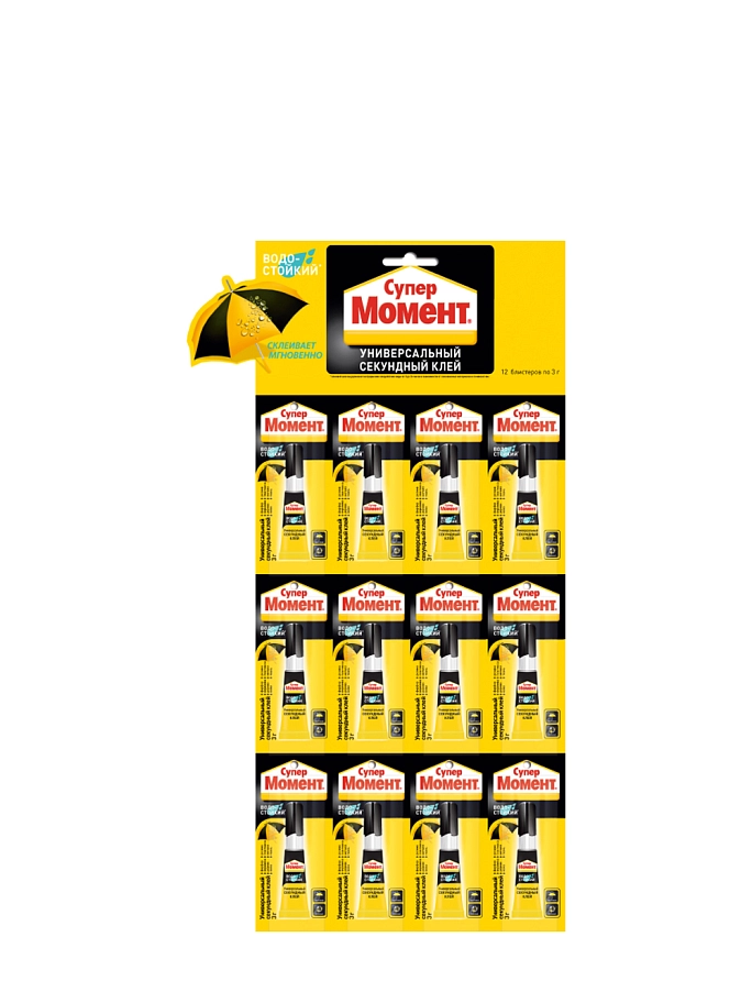 Клей универсальный Супер Момент Водостойкий 3 г. 12 шт. на мульти-карте