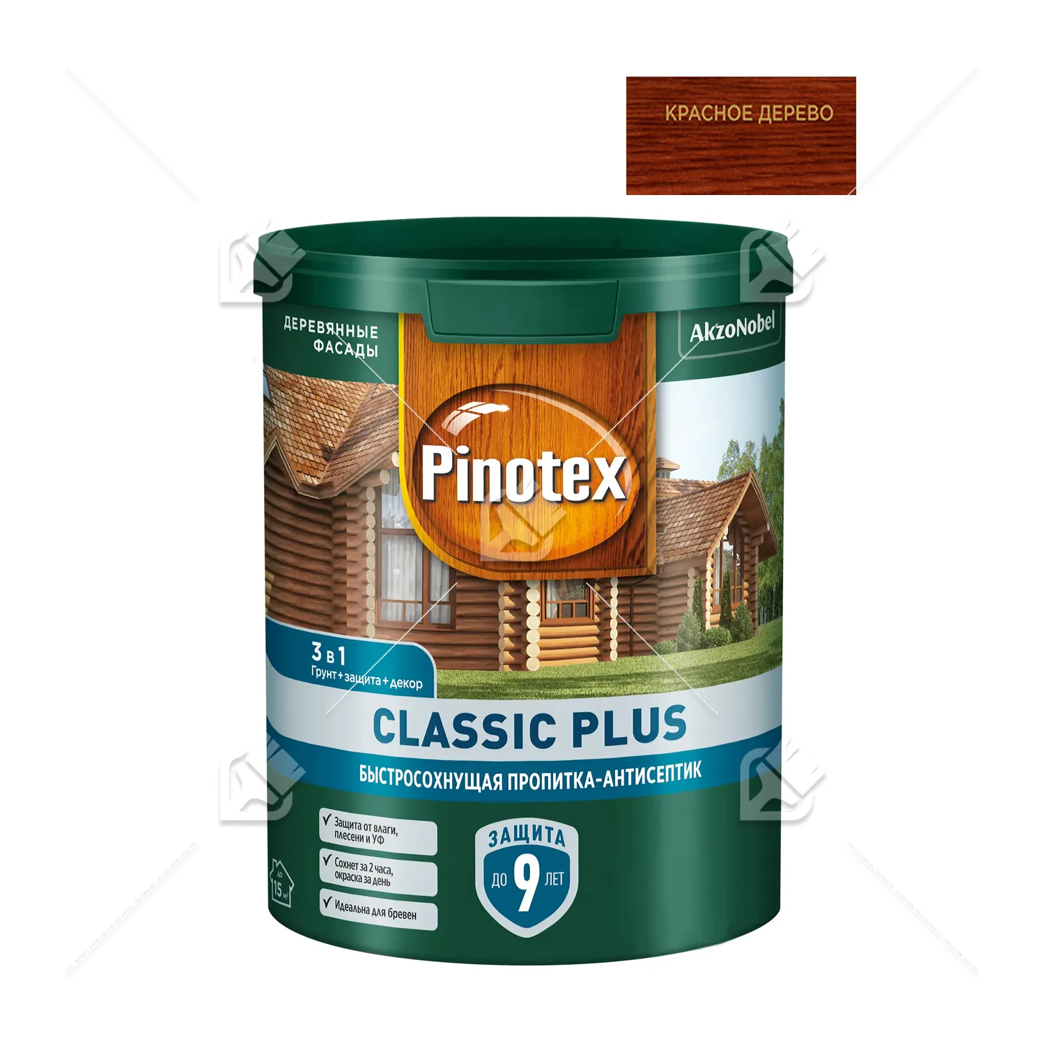 Пропитка декоративная для защиты древесины Pinotex Classic Plus 3 в 1 красное дерево 0,9 л.