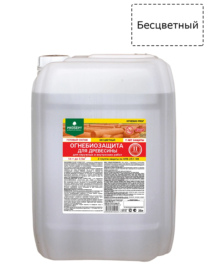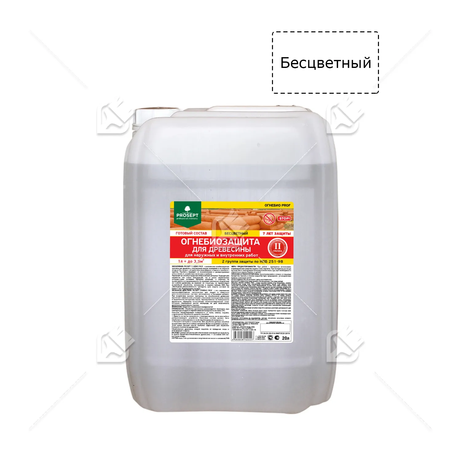 Состав огнезащитный для древесины Prosept Огнебио Prof-2 бесцветный 20 л. пожарный сертификат ГОСТ