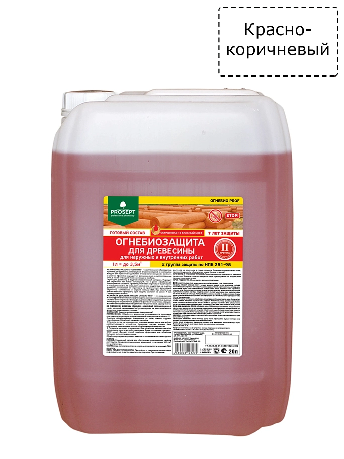 Состав огнезащитный для древесины Prosept Огнебио Prof-2 красно-коричневый 20 л. пожарный сертификат ГОСТ