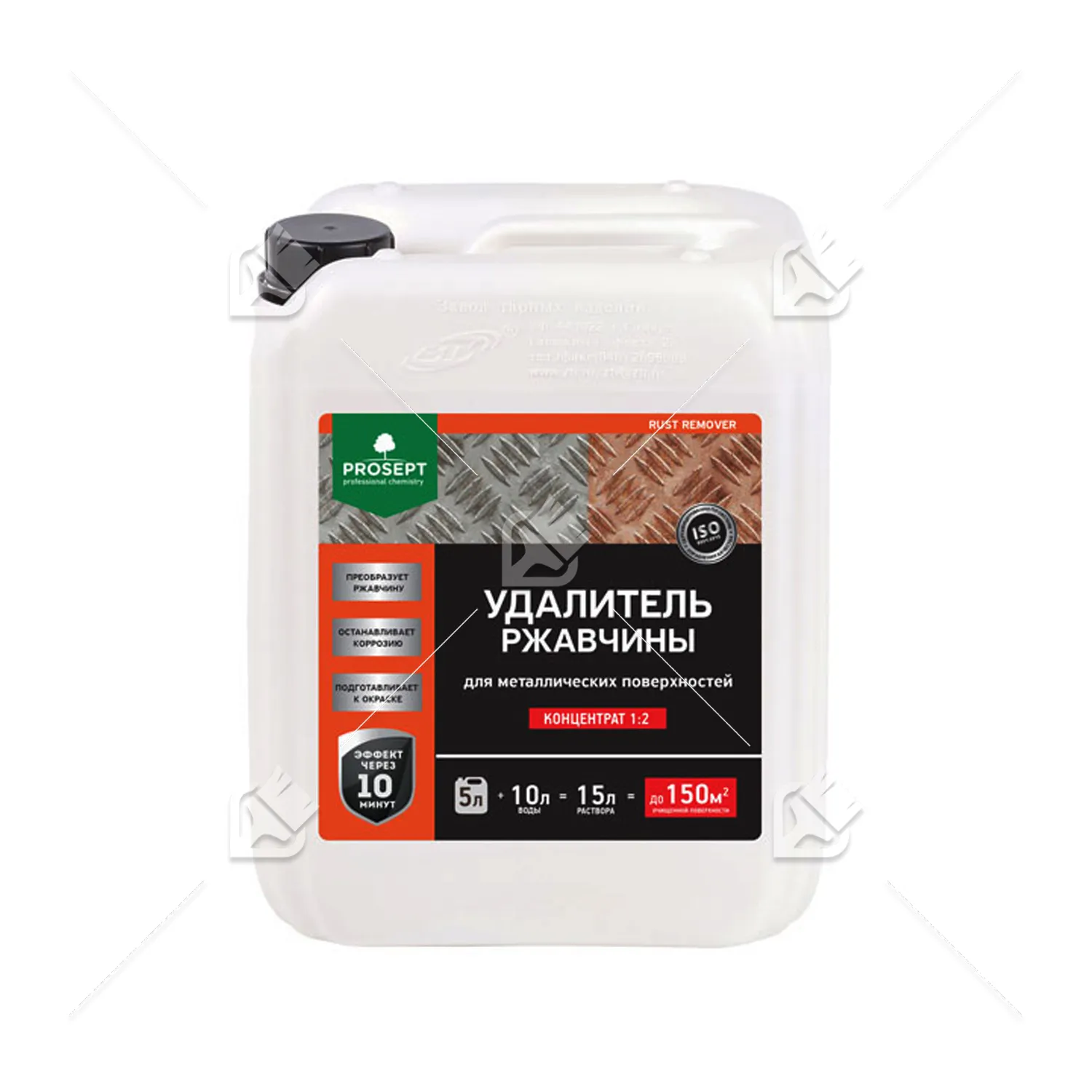 PROSEPT RUST REMOVER – средство для удаления очагов коррозии с поверхности металлов. Останавливает и предотвращает коррозионное разрушение. Может использоваться для подготовки поверхности металлов перед нанесением лакокрасочных покрытий, в том числе порошковых. После обработки на поверхности металла образуется плотная защитная пленка из нерастворимых в воде