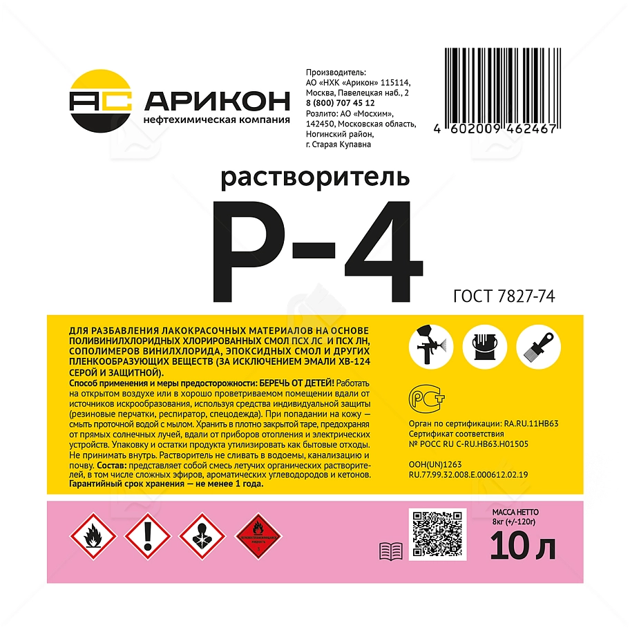 - Растворитель Р-4 (Р-4 А) Арикон представляет собой смесь летучих органических растворителей: сложных эфиров, кетонов, ароматических углеводородов.