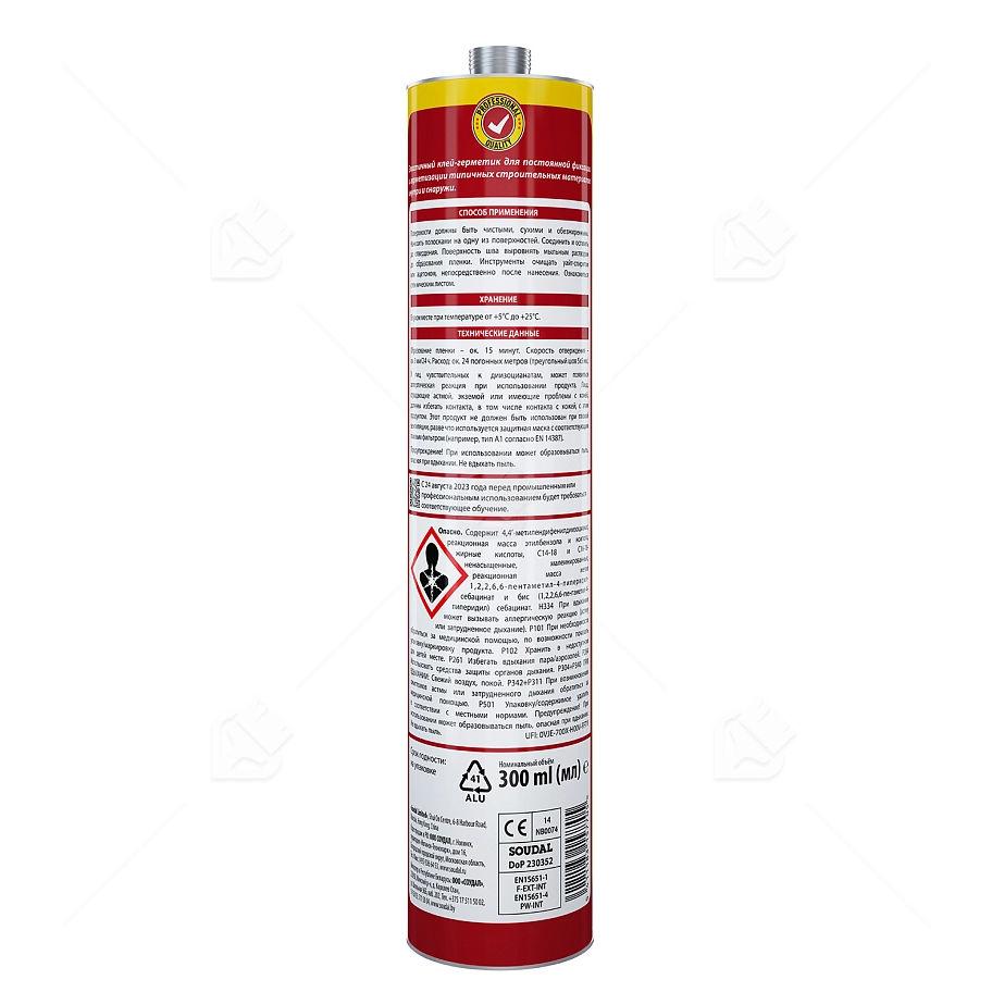 Быстросохнущий влаго- и морозостойкий полиуретановый клей-герметик для постоянной фиксации и герметизации типичных строительных материалов внутри и снаружи.