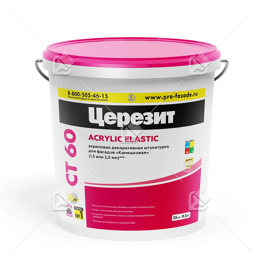 ПодробнееШтукатурка декоративная акриловая Церезит СТ 60 камешковая 2,5 мм база 25 кг