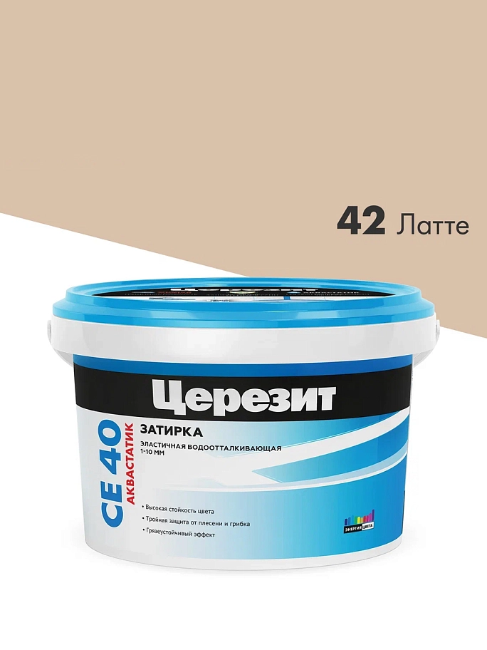 ПодробнееЗатирка для швов до 10 мм водоотталкивающая Церезит СЕ 40 Аквасатик 42 латте 2 кг