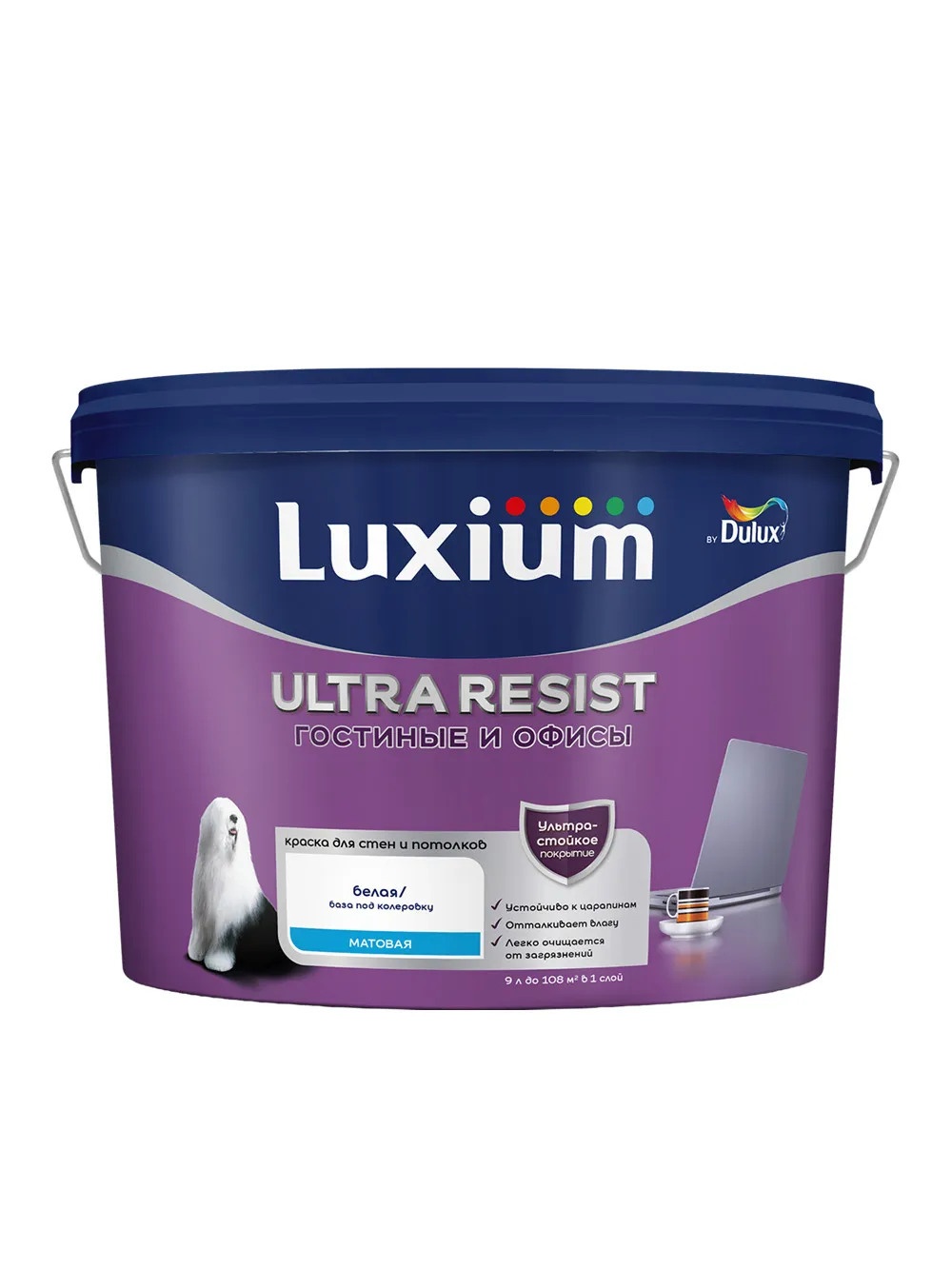 Краска для стен и потолков латексная Luxium Ultra Resist Для Гостиной и Офиса матовая база BW 9 лБаза
